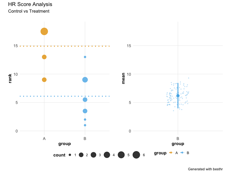 besthr is a package that creates plots showing scored HR experiments and plots of distribution of means of ranks of HR score from bootstrapping.